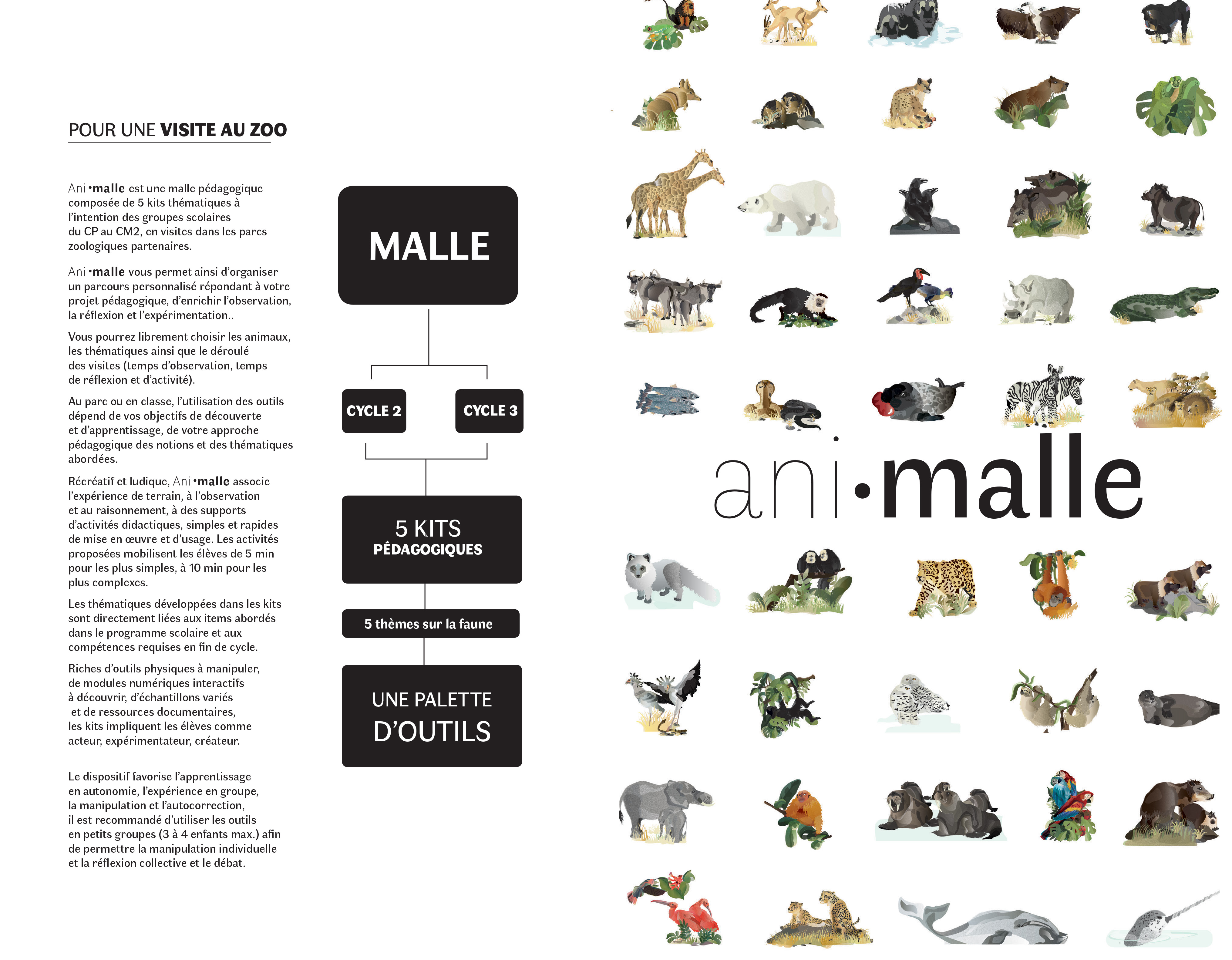Kit Ani.malle ensemble d’outils pédagogiques • HEAR & Parc Zoologique et Botanique de Mulhouse • Projet de diplôme • Graphisme, illustration & conception • 2018