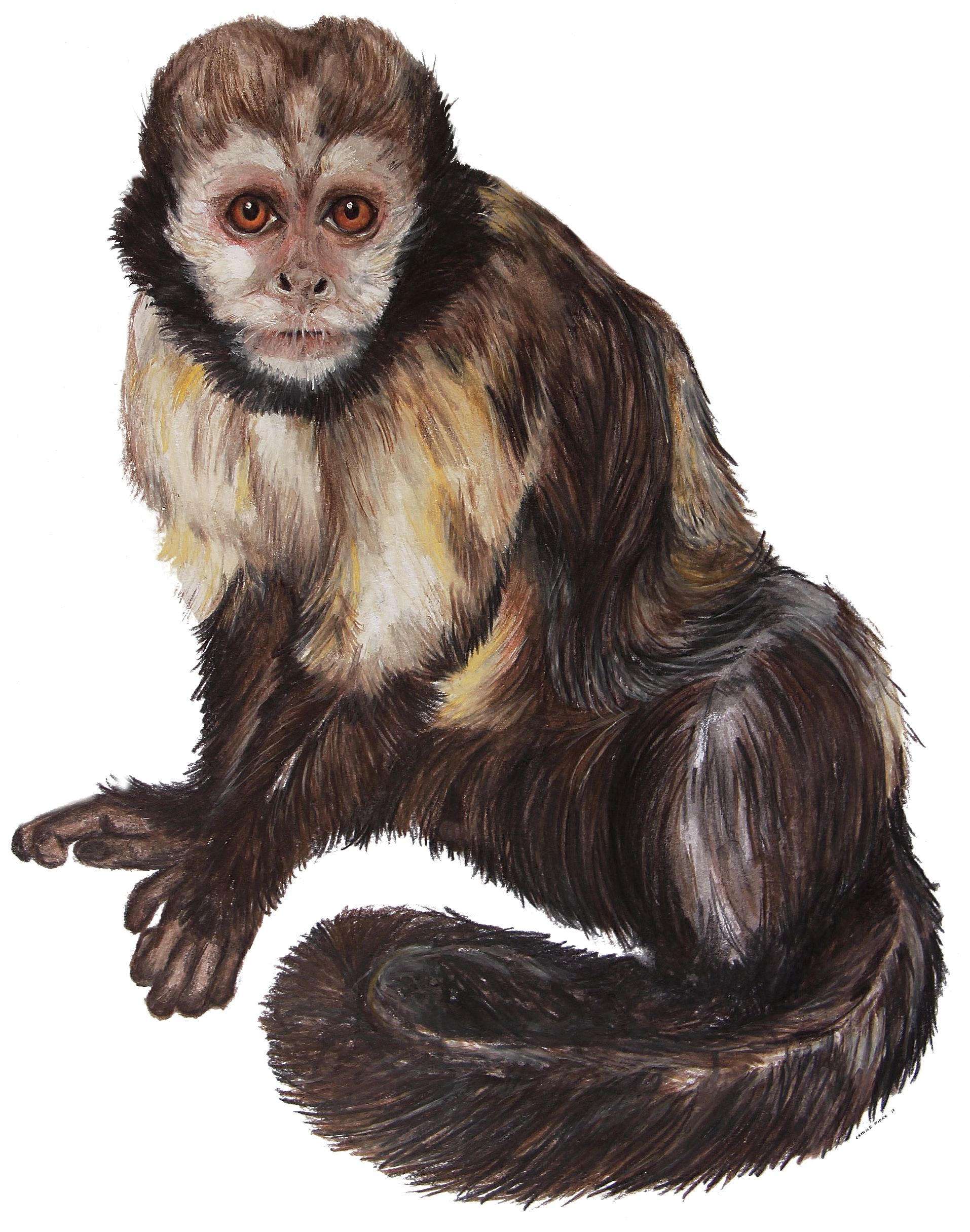 Sapajus xanthosternos • Illustration traditionnelle • crayons • Parc Zoologique et Botanique de Mulhouse • 2017