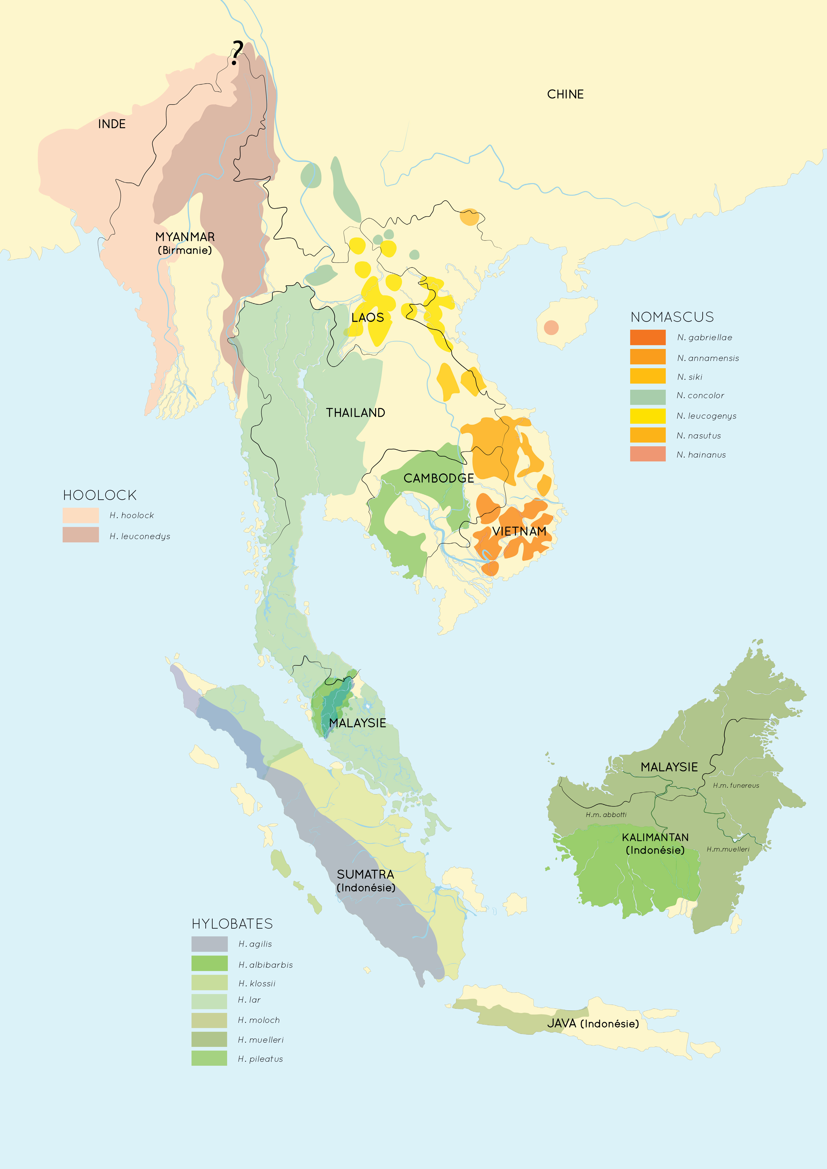 Recherches et étude Gibbons • projet non abouti • Illustration vectorielle • Cartographie • Parc Zoologique et Botanique de Mulhouse • 2018